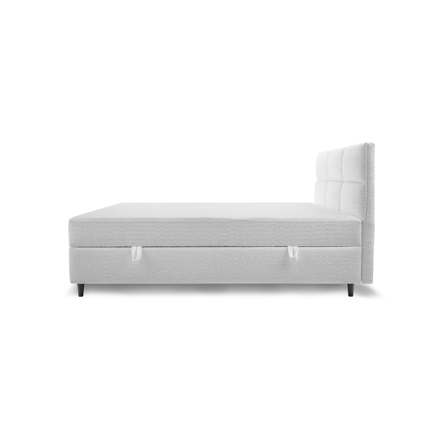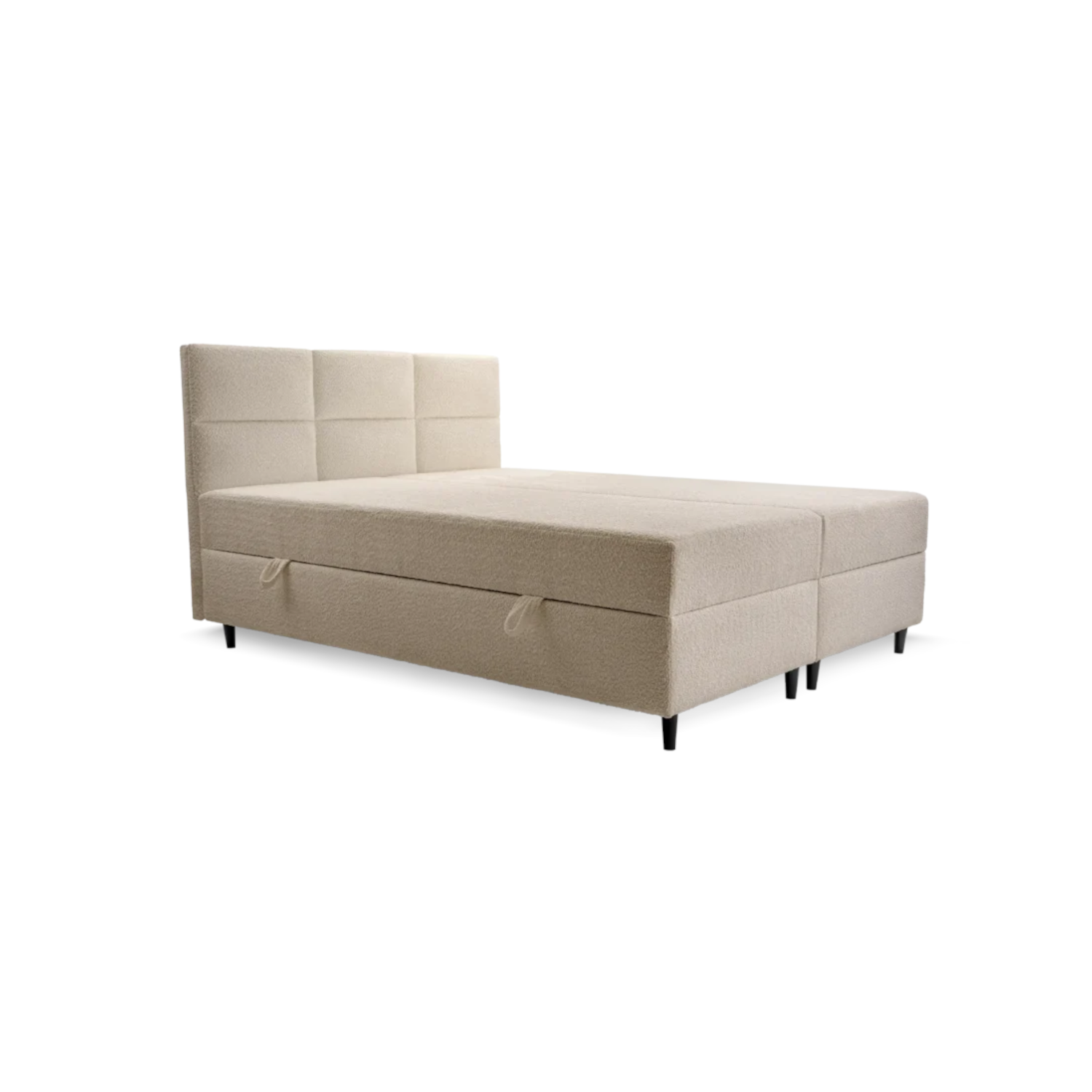 - Betttyp: Boxspringbett, gepolstert, mit Bettkasten.