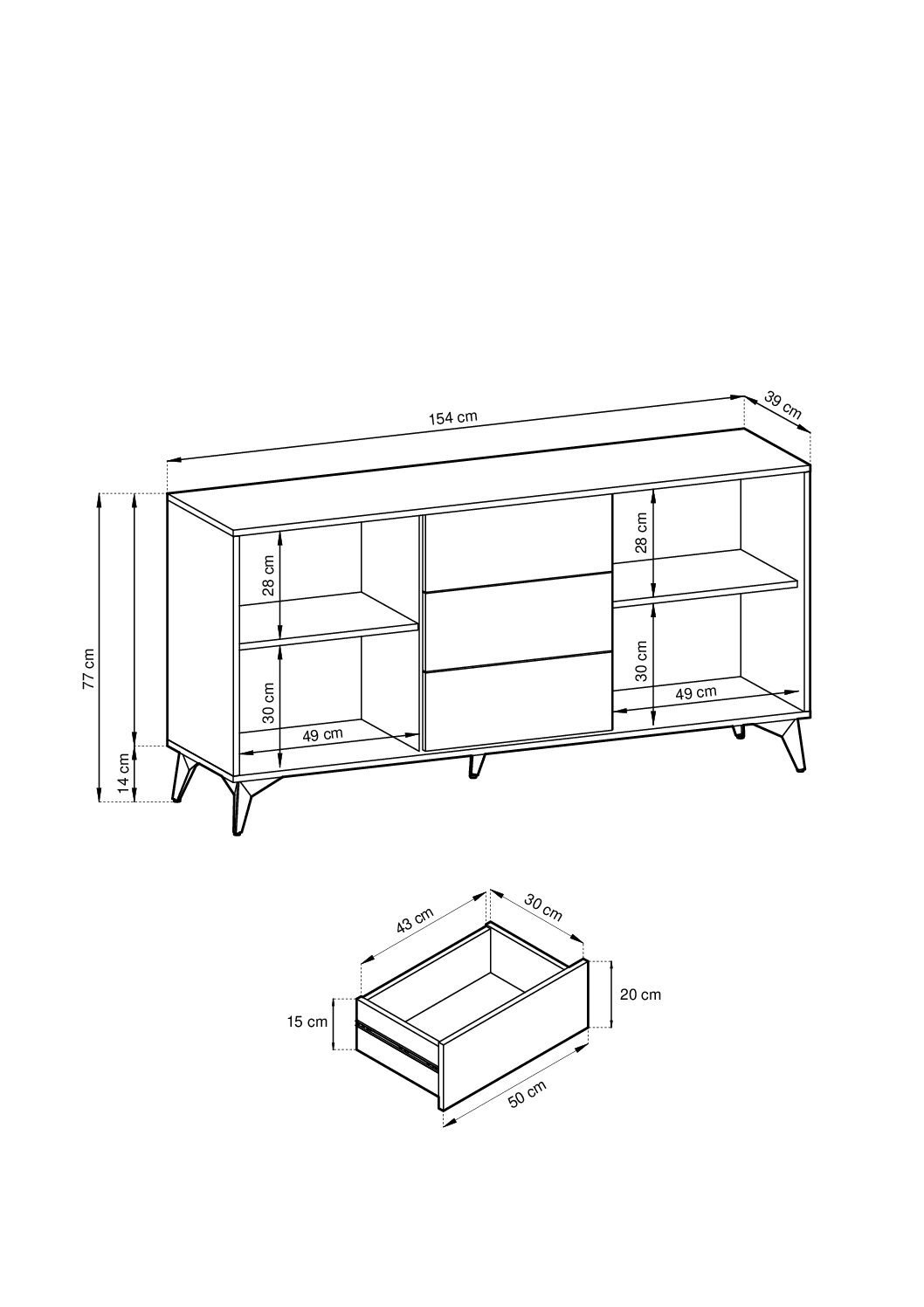 • Funktionale Aufbewahrung: Ausgestattet mit drei geräumigen Schubladen und zwei verschließbaren Schränken bietet sie praktische Lösungen zur Organisation des Raums.