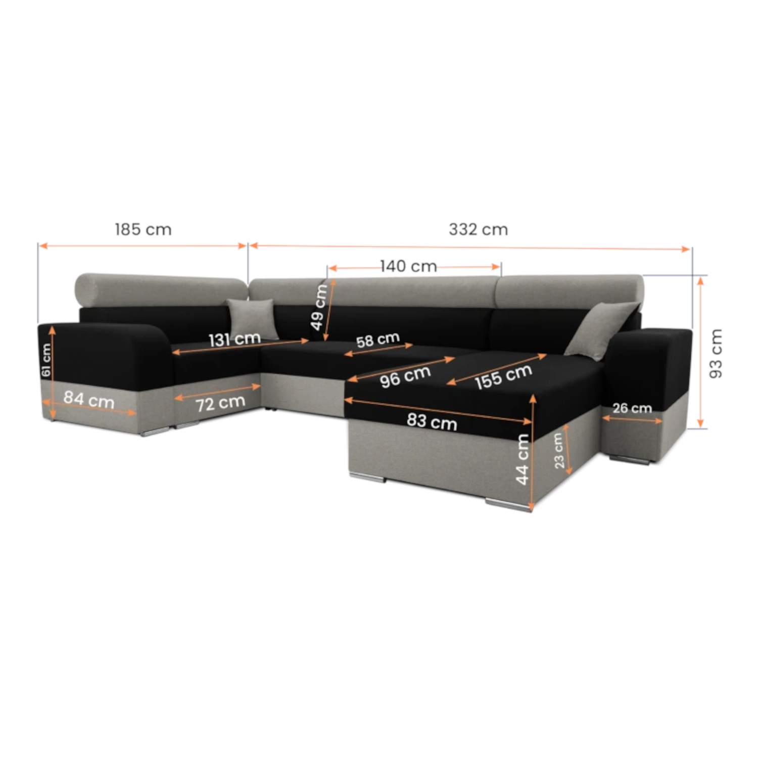 • Vielseitiges Design – verfügbar als „U“-Ecksofa (links oder rechts) sowie als universelle „L“-Variante zur Anpassung an jede Raumaufteilung.