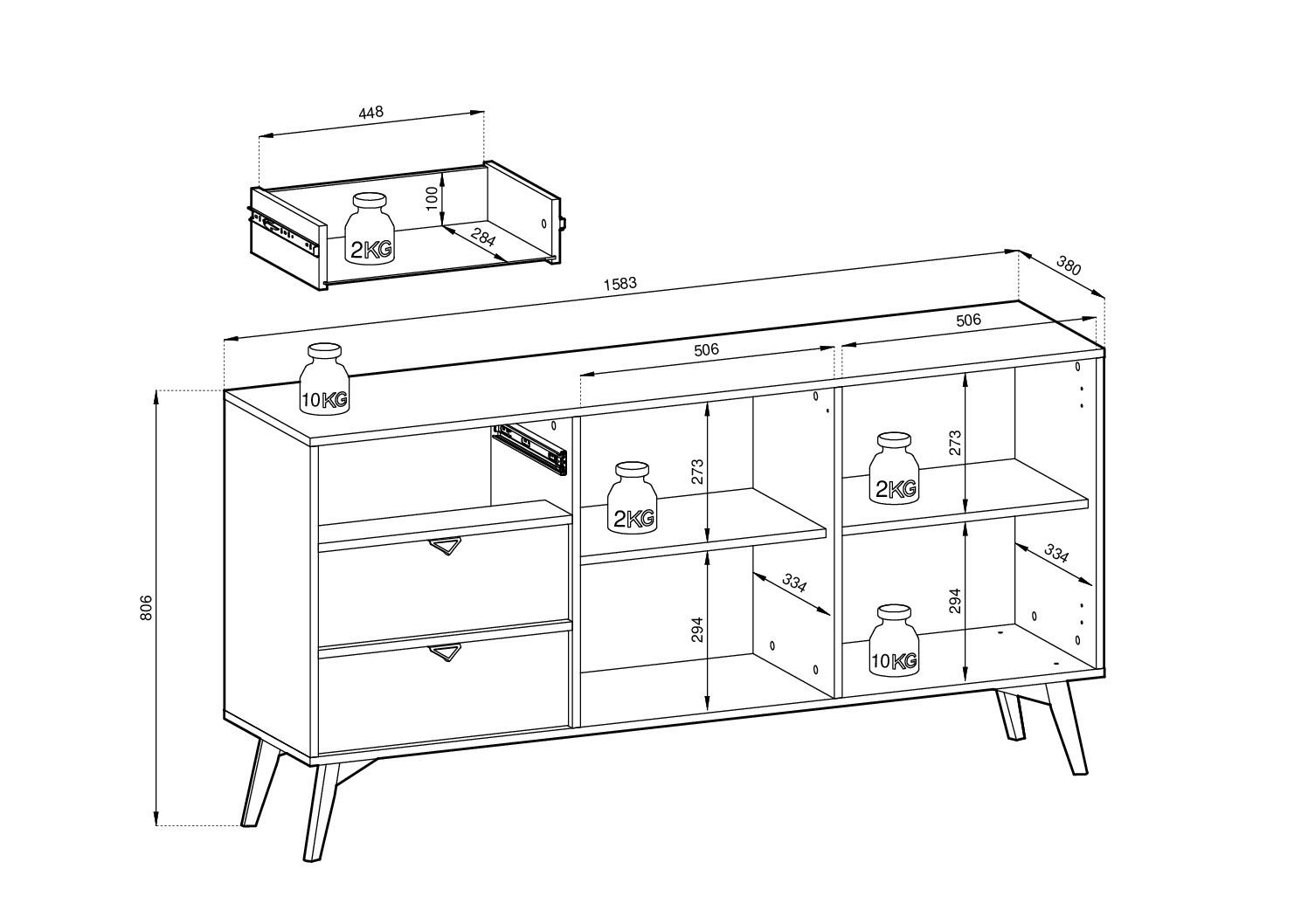 - 3 Schubladen mit Kugelführungen, vollständigem Auszug