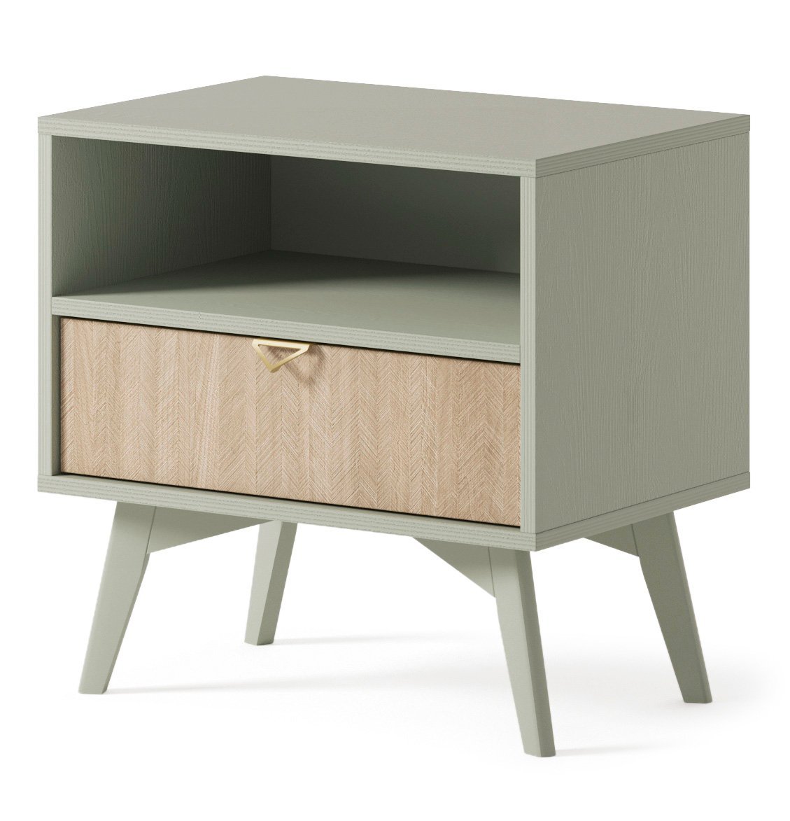 Forest NACHTTISCH ist eine Kombination aus Funktionalität und Ästhetik. Der Korpus und die Fronten bestehen aus 16 mm starkem, feuchtigkeits- und kratzbeständigem Laminat, mit einer zusätzlichen ABS-Kante von 0,5 mm zum Schutz. Die stabilen Füße aus Buchenholz verleihen dem Tisch Stabilität, und das matte Finish unterstreicht den modernen Charakter des Möbels.