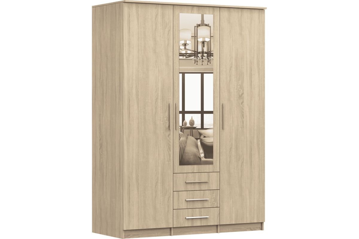 Der Schrank zeichnet sich durch eine praktische Aufbewahrungslösung und großes Fassungsvermögen aus. Im geräumigen Inneren finden wir eine optimale Anzahl an Regalen. Der Schrank verfügt über traditionell öffnende Fronten, die eine bequeme Nutzung des Möbels garantieren. Dieses Modell eignet sich hervorragend für das Schlafzimmer, die Garderobe und den Flur.