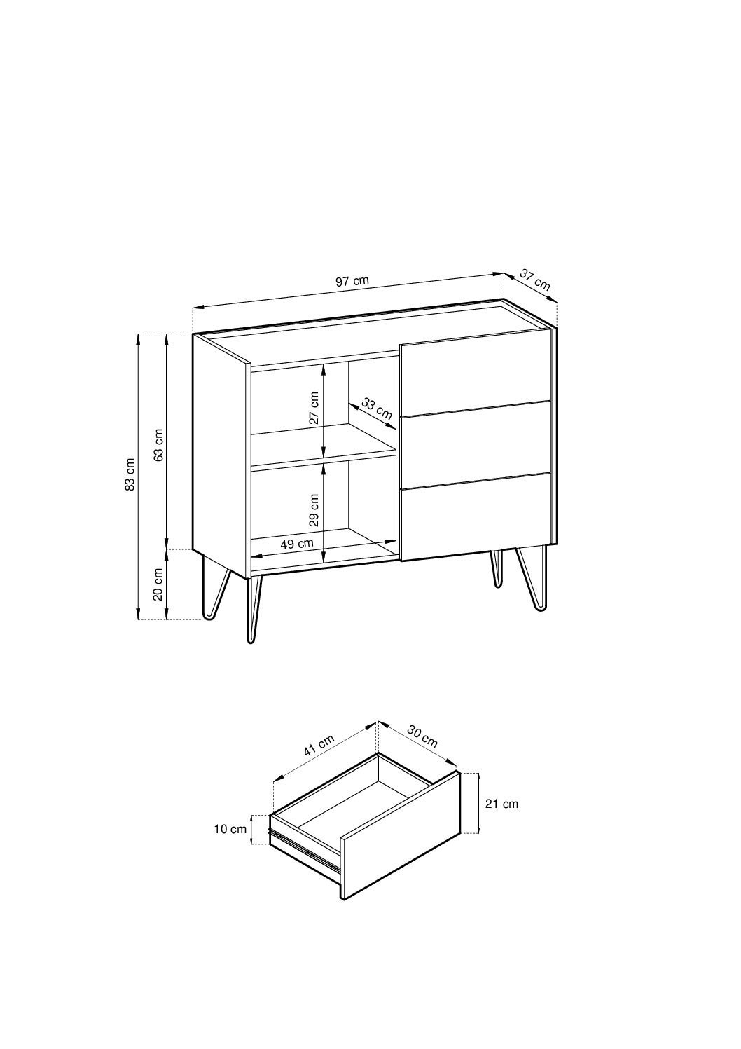 • Höhe: 83 cm (mit Beinen)