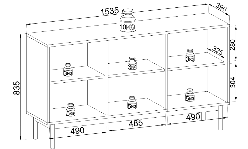 - Maße: 153,5 cm (Breite) x 83,5 cm (Höhe) x 39 cm (Tiefe) – eine geräumige Kommode, die ausreichend Stauraum bietet. Ideal für Wohnzimmer, Schlafzimmer oder Flur, um den Raum bequem und ästhetisch zu organisieren.