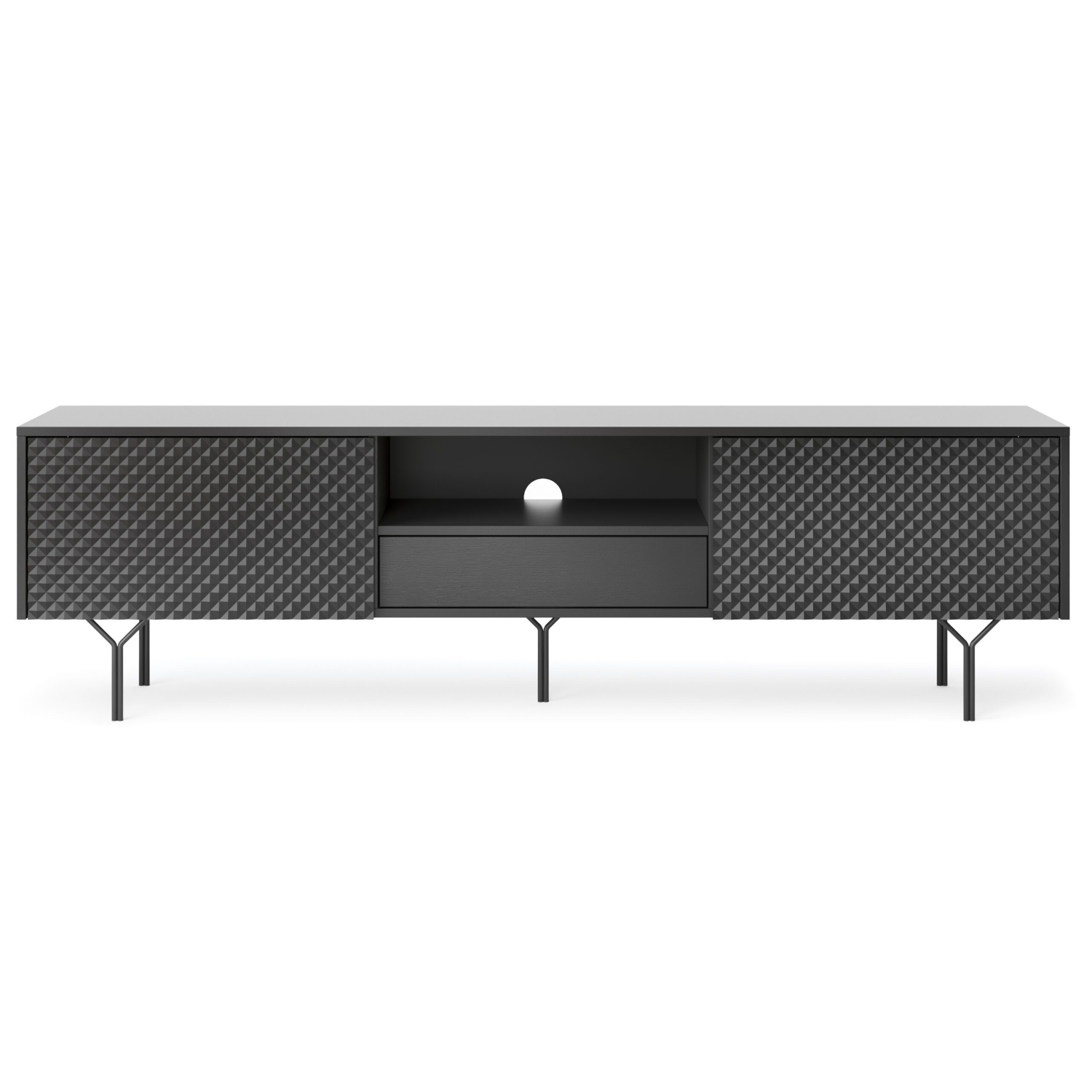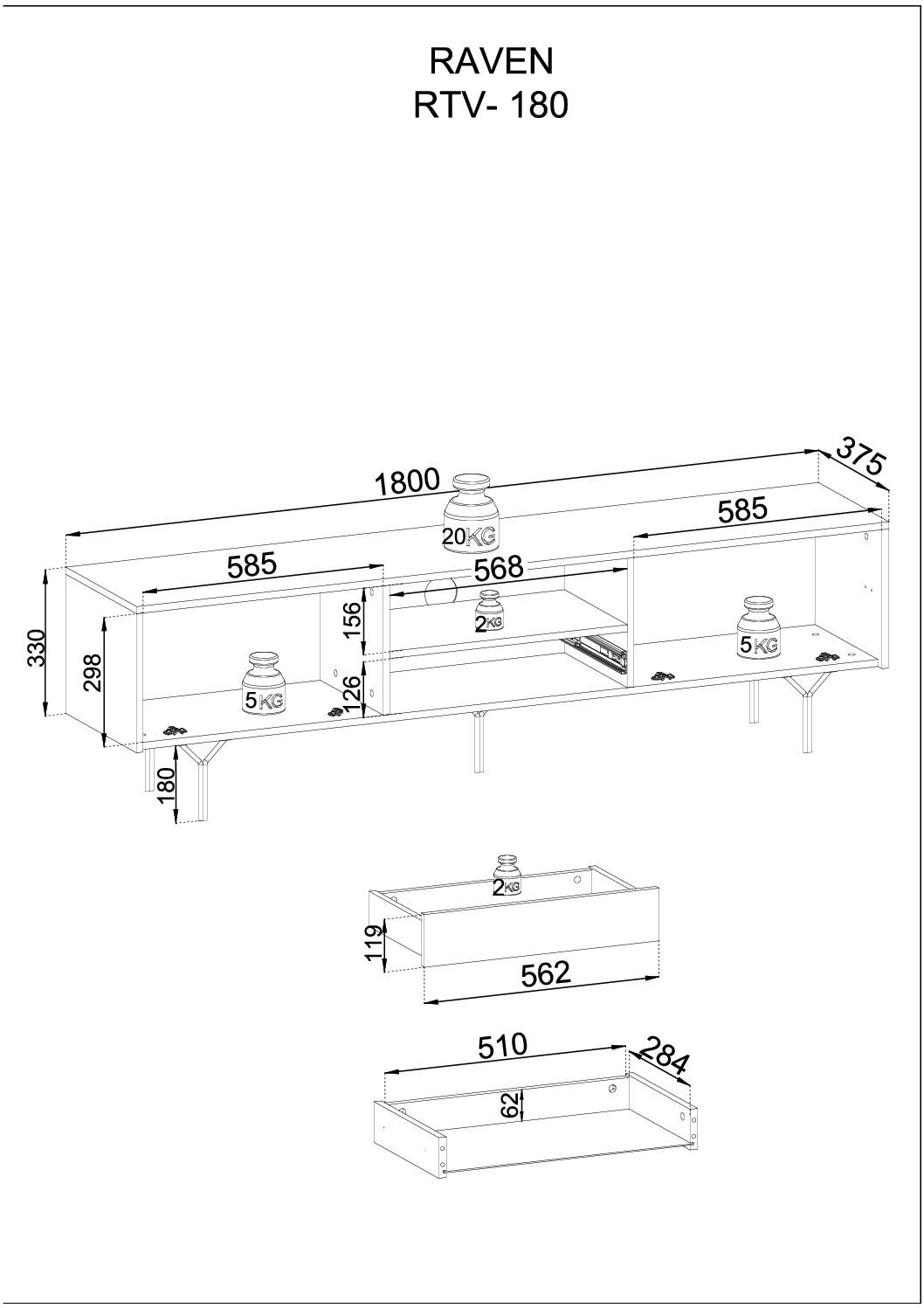 - Kollektion: Raven RTV gehört zur Raven-Kollektion, die auch drei Kommoden in verschiedenen Konfigurationen umfasst.