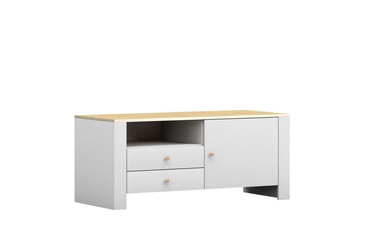 Der RTV-Schrank AVION ist eine elegante und funktionale Lösung für das Wohnzimmer, die sich nicht nur durch ihre Praktikabilität, sondern auch durch stilvolle goldene Griffe auszeichnet. Der Schrank wurde für moderne Innenräume entworfen und passt perfekt zu verschiedenen Einrichtungsstilen.