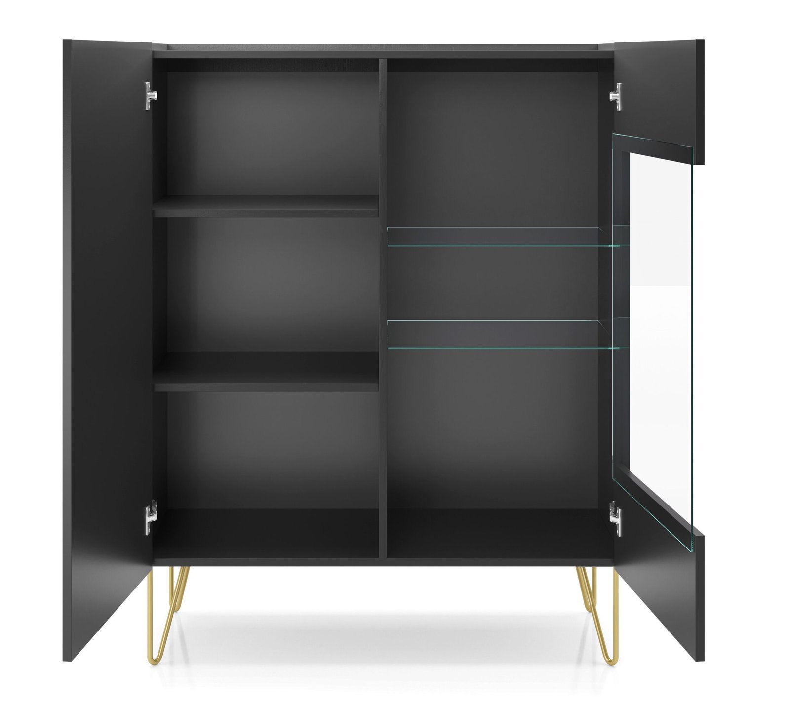 - Die Vitrine verfügt über zwei geschlossene Schränke mit Regalen und eignet sich daher ideal zur Aufbewahrung verschiedener Gegenstände.