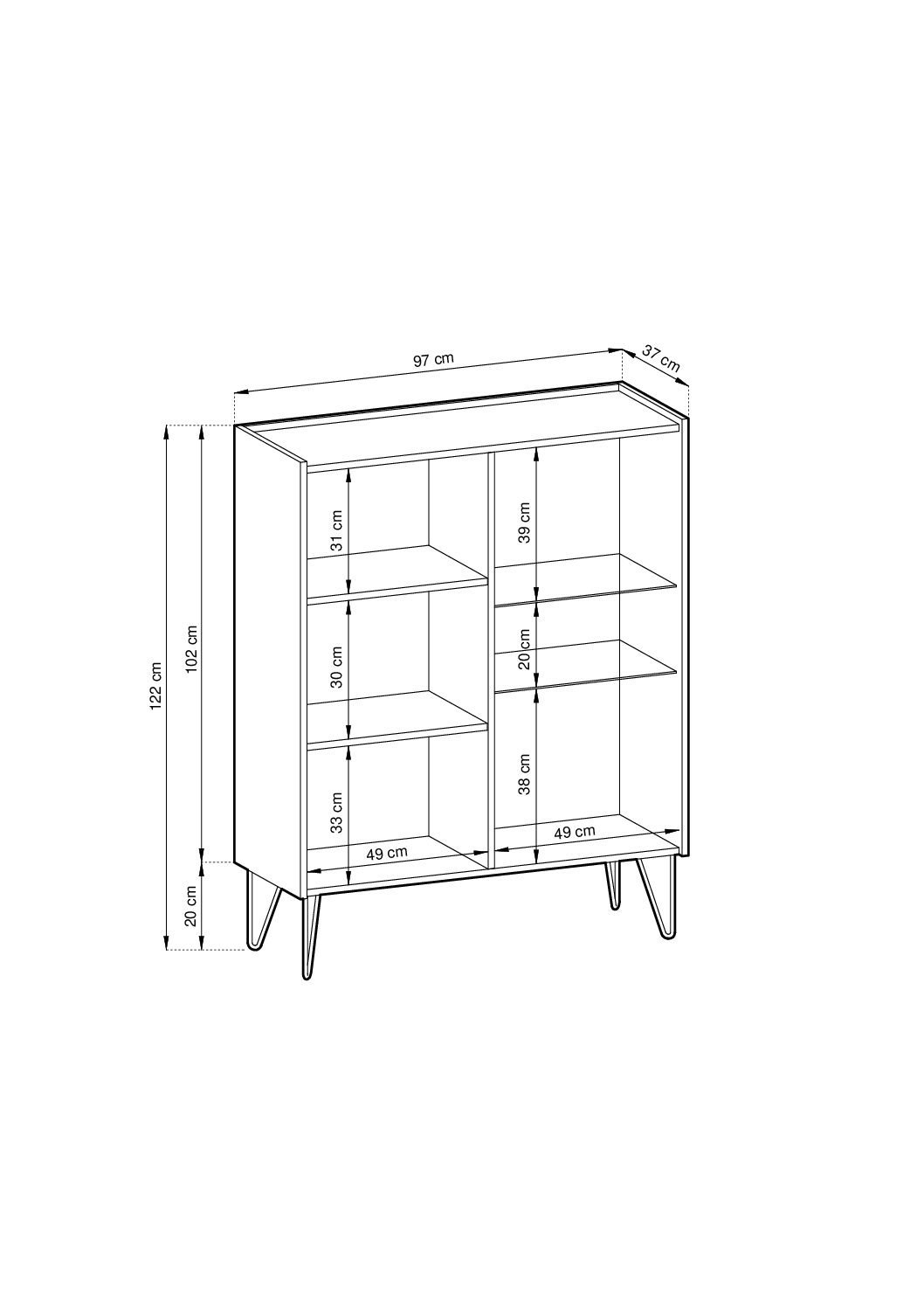 - Höhe: 122 cm (einschließlich Beine).